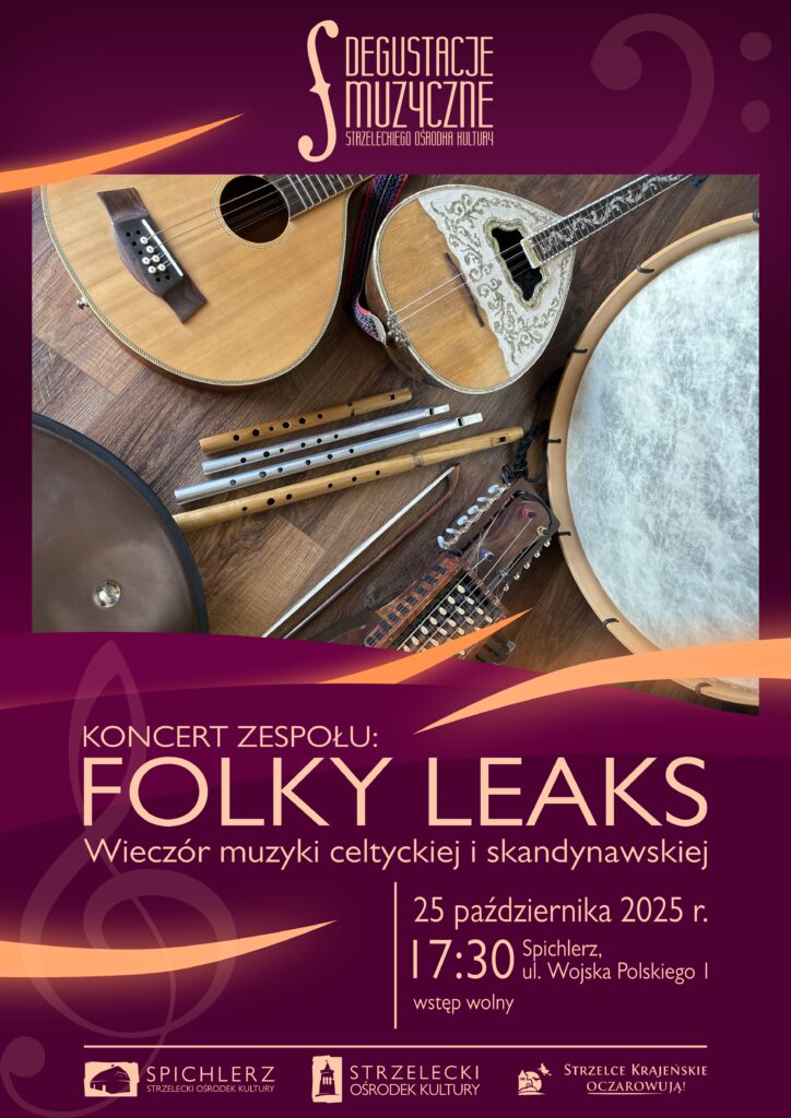 „Degustacje Muzyczne” otworzy swoim występem zespół Folky Leaks – grupa, która przeniesie nas w czasie i w przestrzeni do średniowiecznej Skandynawii i Wysp Brytyjskich. Muzycy dotrą do nas z intrygującym zestawem instrumentów, których brzmienie dla wielu słuchaczy będzie nowością, świeżym doświadczeniem – któż z Was wie, jak brzmi m.in. nyckelharpa, cittern, czy też bodhran?