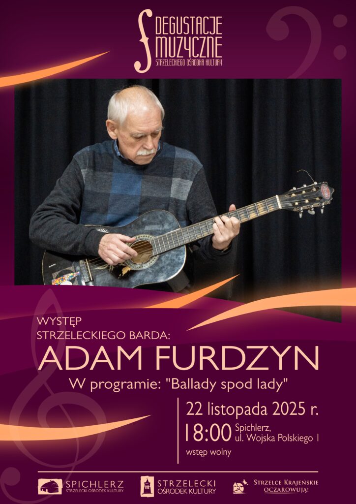 W ramach drugiej edycji Degustacji Muzycznych wystąpi lokalny artysta, zwany Strzeleckim Bardem – Adam Furdzyn. Duża część Strzelczan na pewno rozpoznaje tutaj byłego dyrektora Strzeleckiego Ośrodka Kultury, chórzystę z Chóru Środowiskowego Cantus Decus, człowieka silnie związanego z lokalną kulturą, mającego w swoim dorobku wiele występów muzycznych.